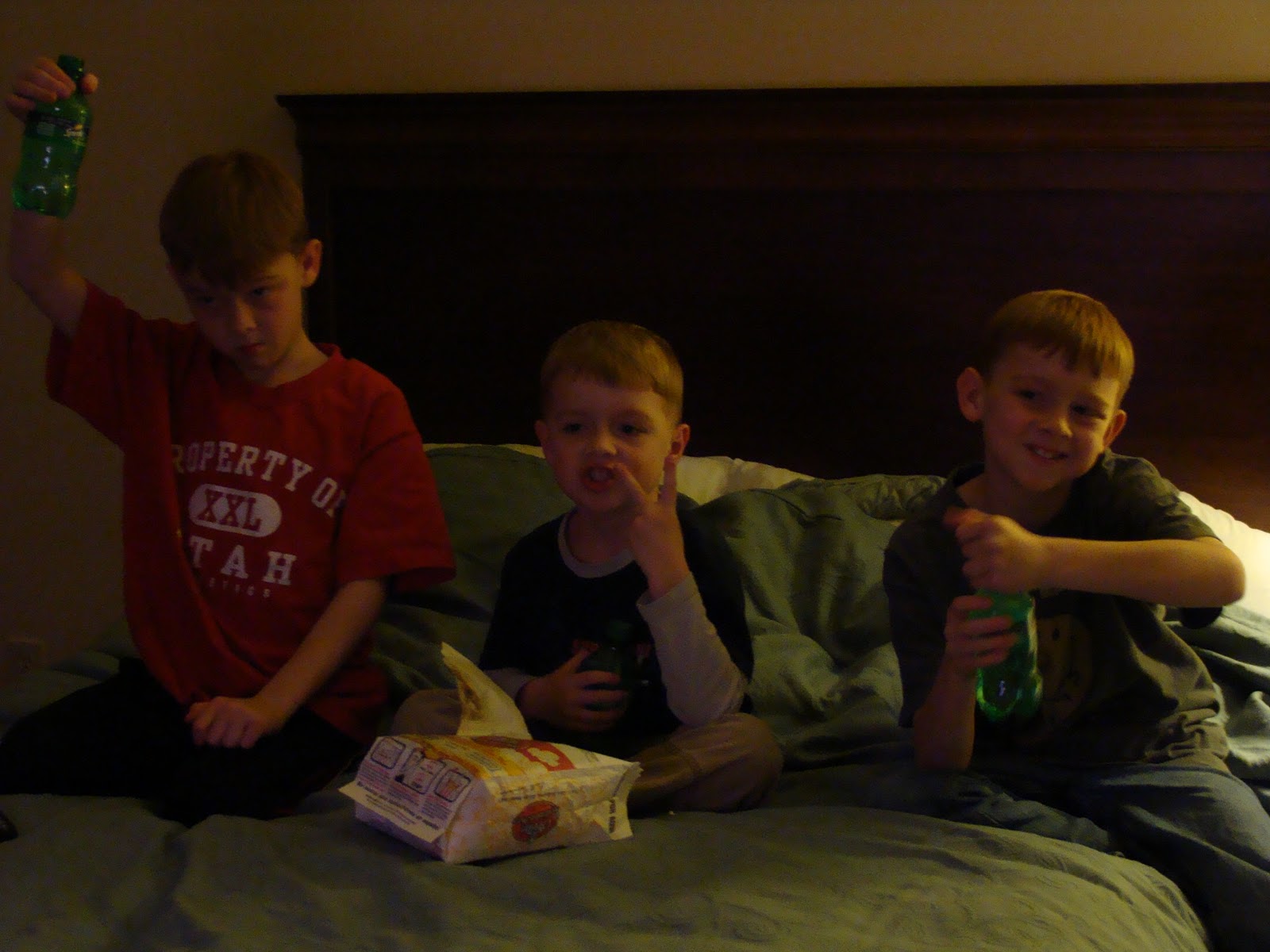 Thankfully we had a room with 2 queen beds and then another room attached with a king bed, so we could close the door and watch our own TV!